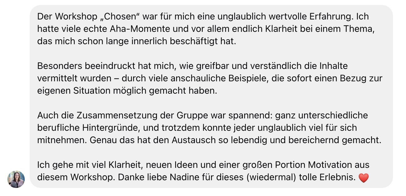 Warum buchen Kunden andere — und nicht Dich? In CHOSEN erfährst Du, wie Du Deine Ausstrahlung, Botschaft und Klarheit so schärfst, dass Du sichtbar wirst und gebucht wirst. 8. & 9. April 2026.